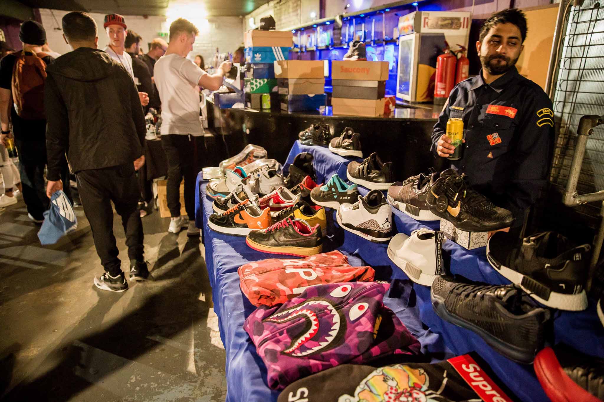 We travelled to Bristol today to check out Sneakerbox– an event catering to the city’s footwear enthusiasts. Bristol is up there with London having one of the strongest streetwear community in the UK and a quick roam around the area proved that. Back with a bigger venue this time, the organisers did a good job of inviting a good mix of clothing and sneaker-resellers as well as some independent brands. Spread out over two floors, the selections definitely didn’t disappoint. From the latest footwear releases to some old Bape and Supreme stuff, the good variety was well received. The outside area for food and general chill-out place was also a bonus, already looking forward to the next one. Check out the pics below.